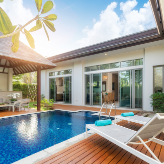 พักผ่อนอย่างหรูหราแสนสบายเหมือนอยู่บ้าน ชมวิวธรรมชาติและแม่น้ำแคว สนุกกับการเล่นน้ำในสระว่ายน้ำกลางแจ้งแบบส่วนตัวในสไตล์พูลวิลล่า (ขนาด 130 ตร.ม.) พื้นที่กว้างขวาง แบ่งโซนห้องพักได้อย่างลงตัว มี 2 ห้องนอน 2 ห้องน้ำ ห้องนั่งเล่น และโซนรับประทานอาหาร